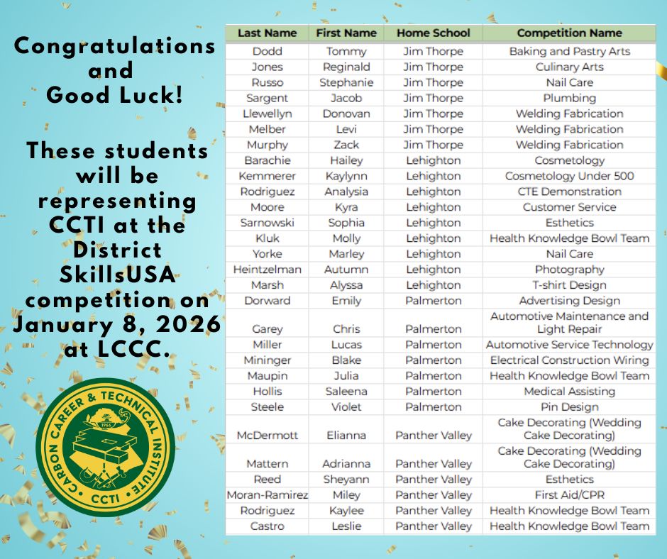 Read the latest news and stay up to date with all the exciting things happening at Carbon Career & Technical Institute!