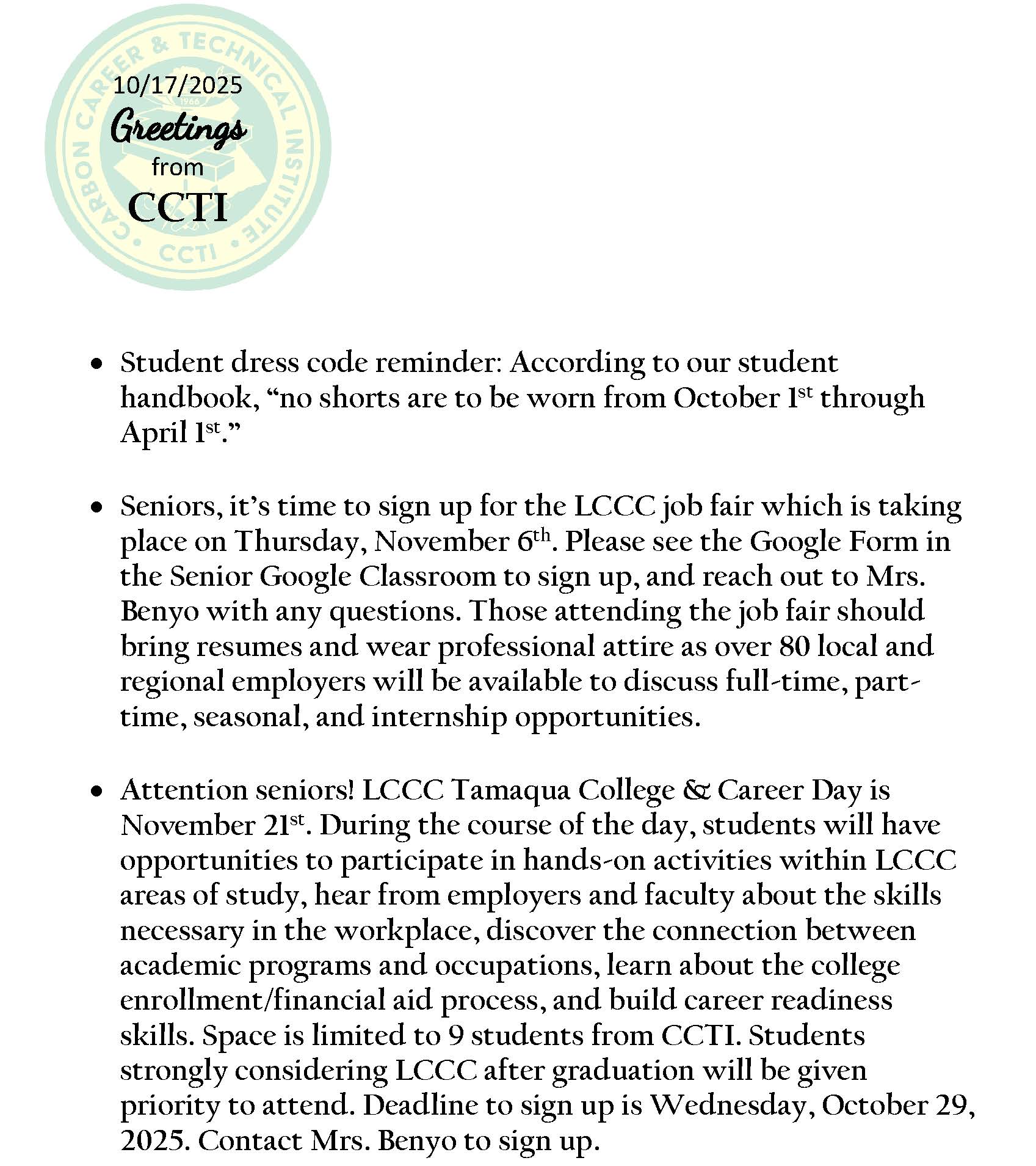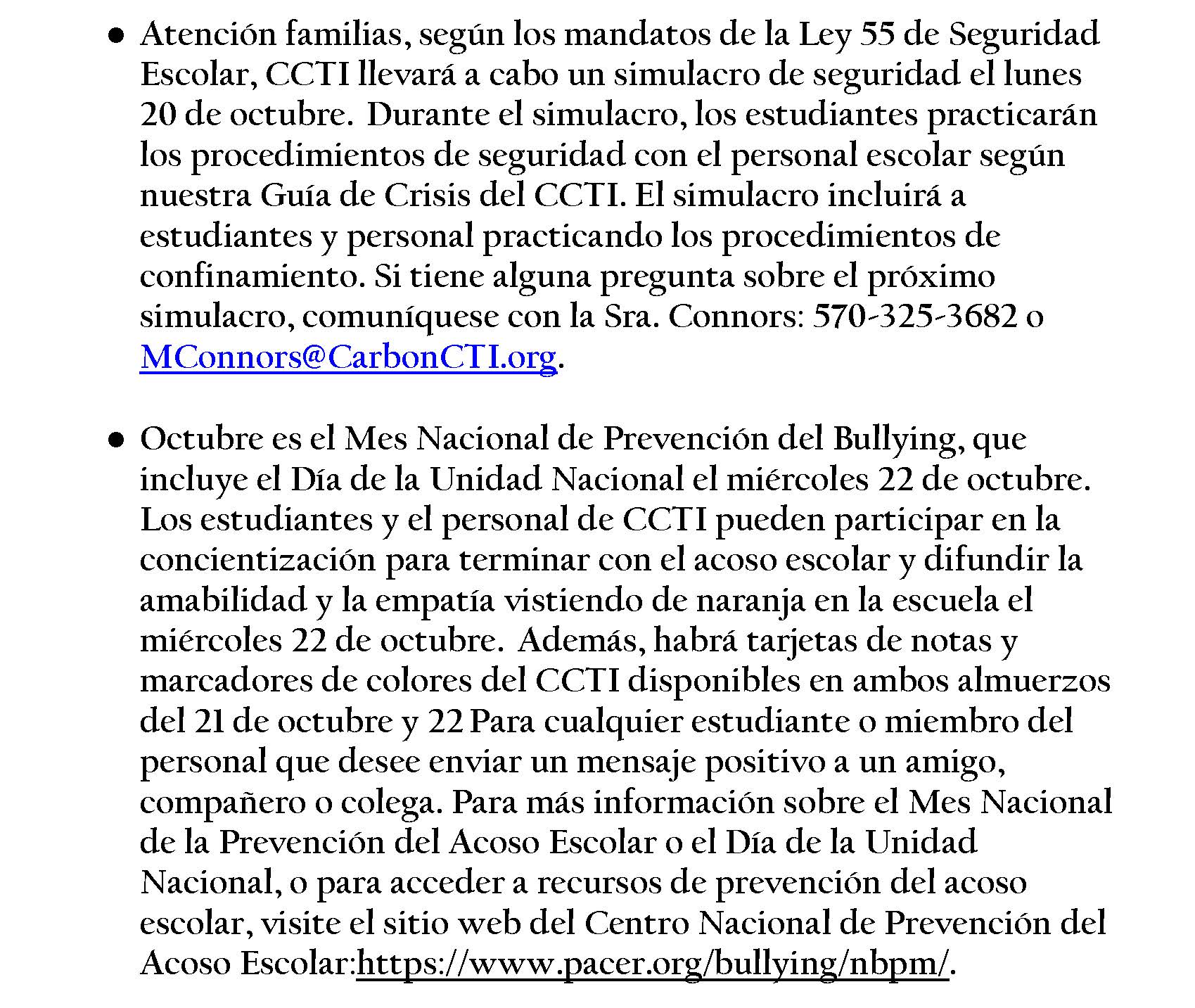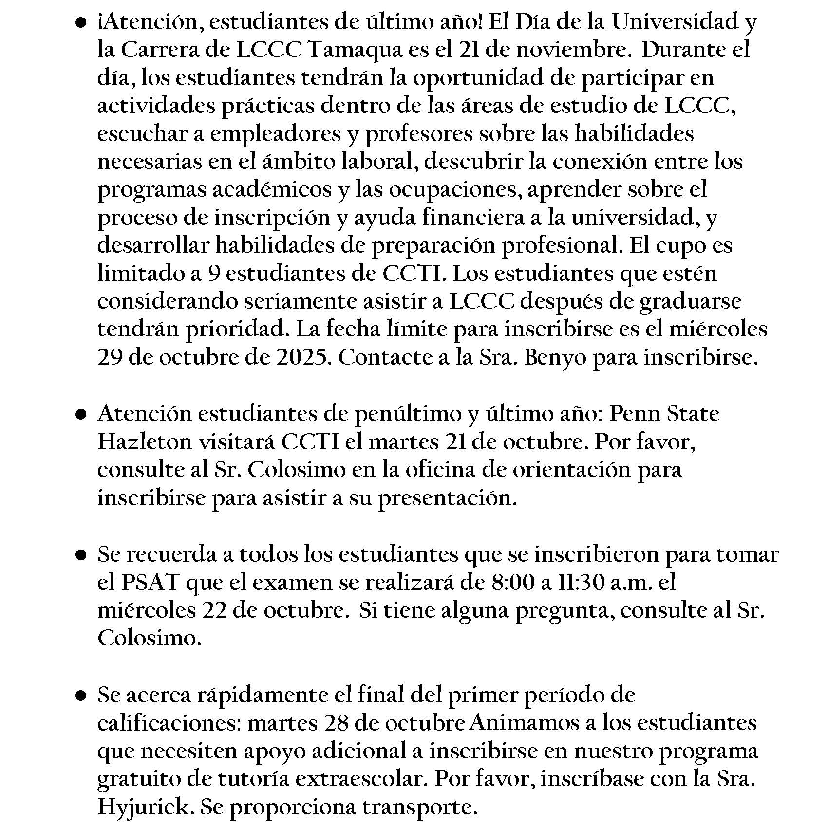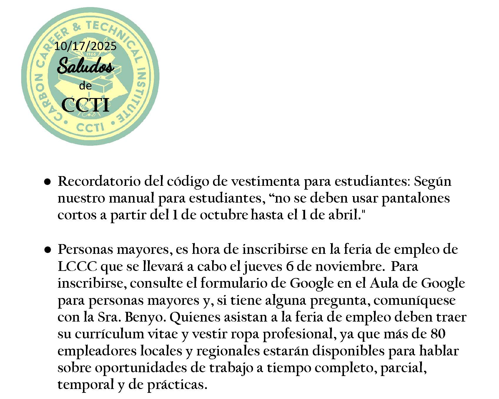 CCTI Friday Message/Mensaje del viernes del CCTI – 10/17/2025