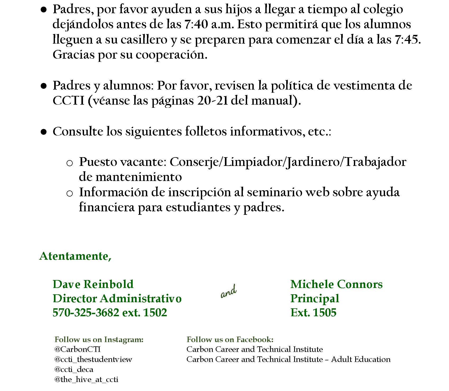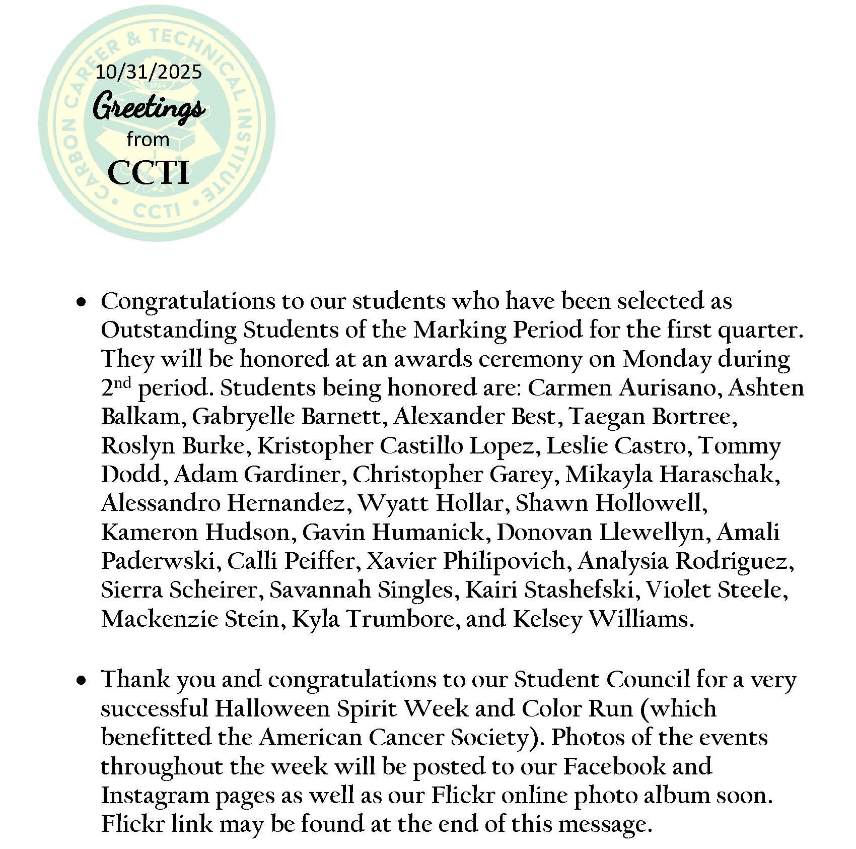 CCTI Friday Message/Mensaje del viernes del CCTI – 10/31/2025