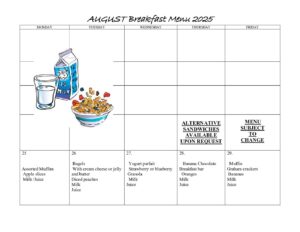 > Students > august menu 25 Breakfast