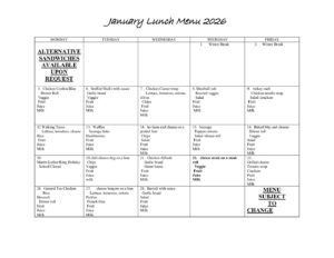 > Students > January Lunch Menu