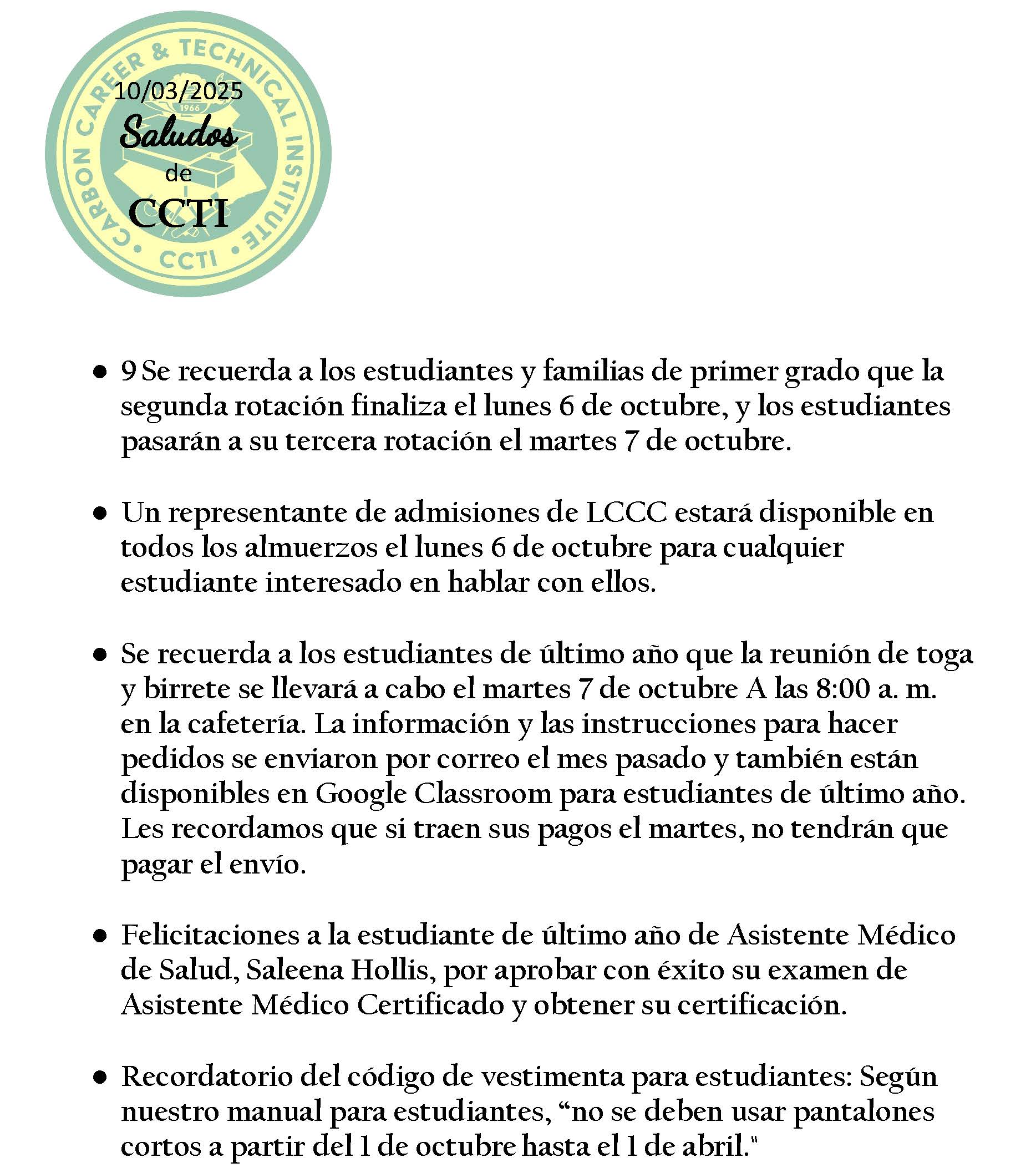 CCTI Friday Message/Mensaje del viernes del CCTI – 10/03/2025